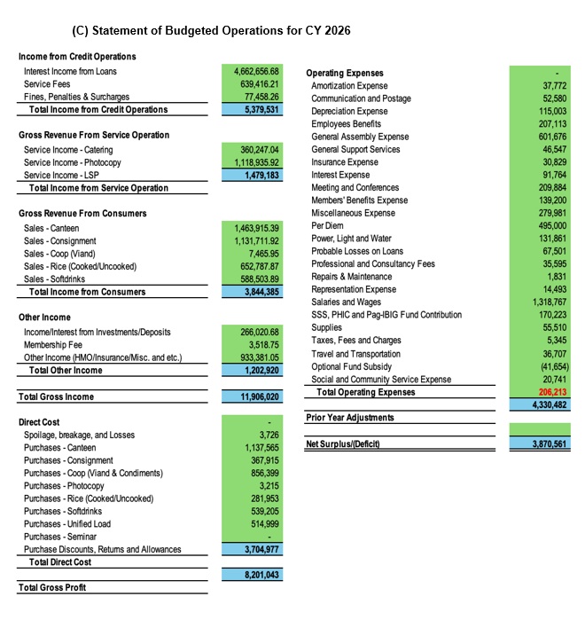 Budgeted Statement of Operations - 2020