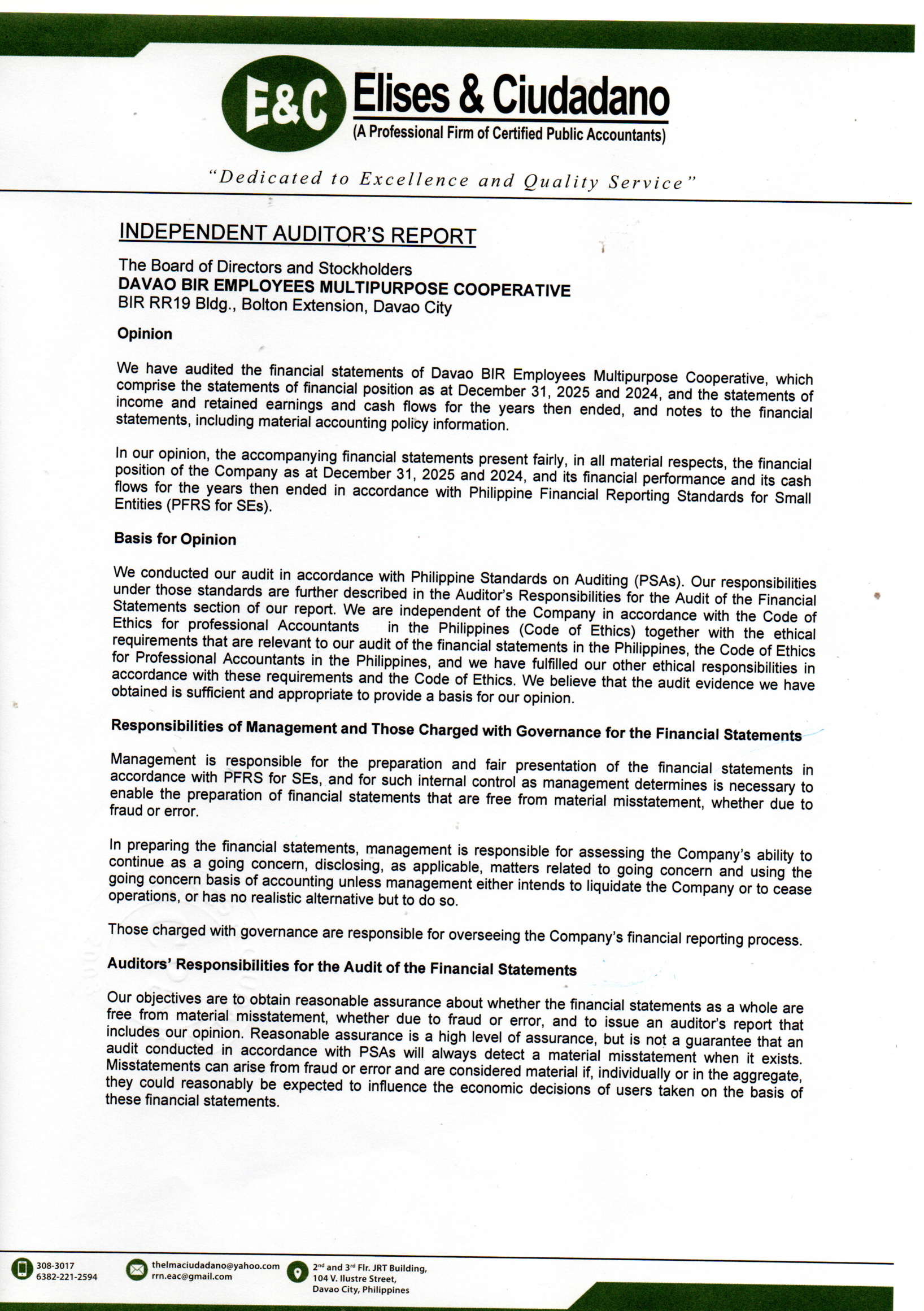 Treasurer's Annual Report 2025